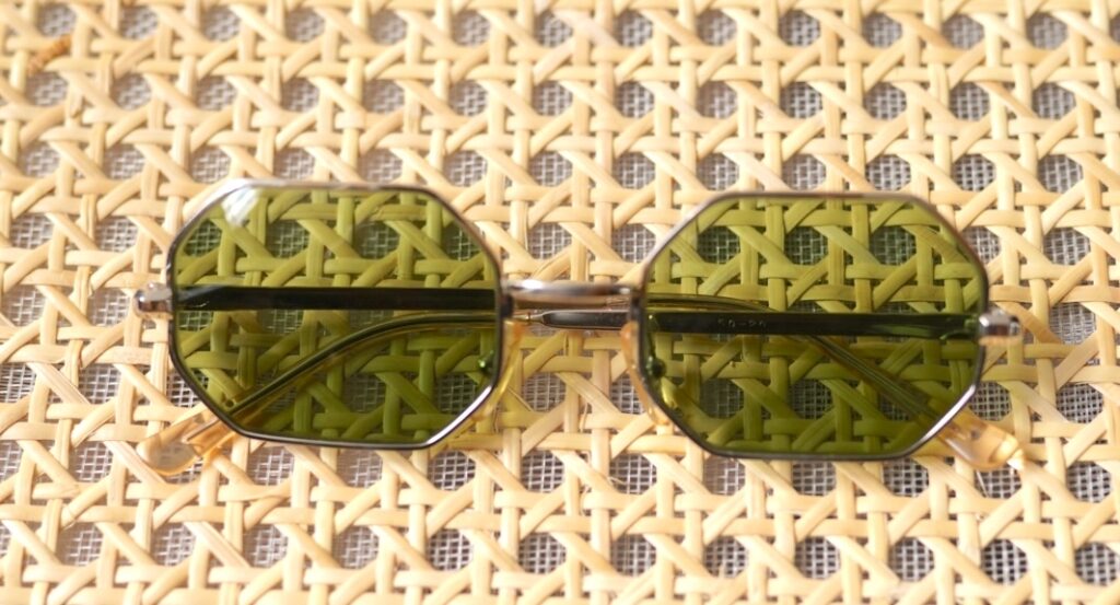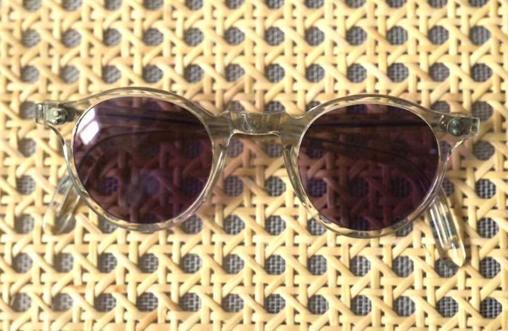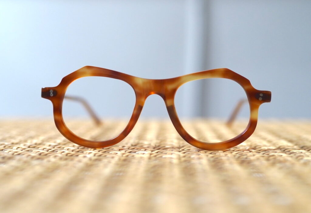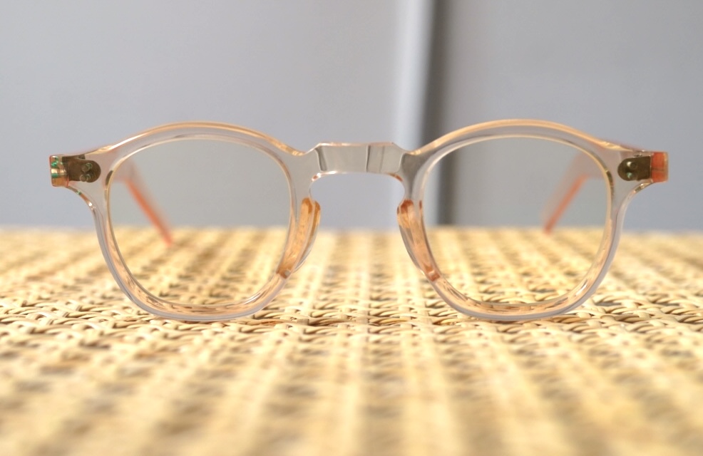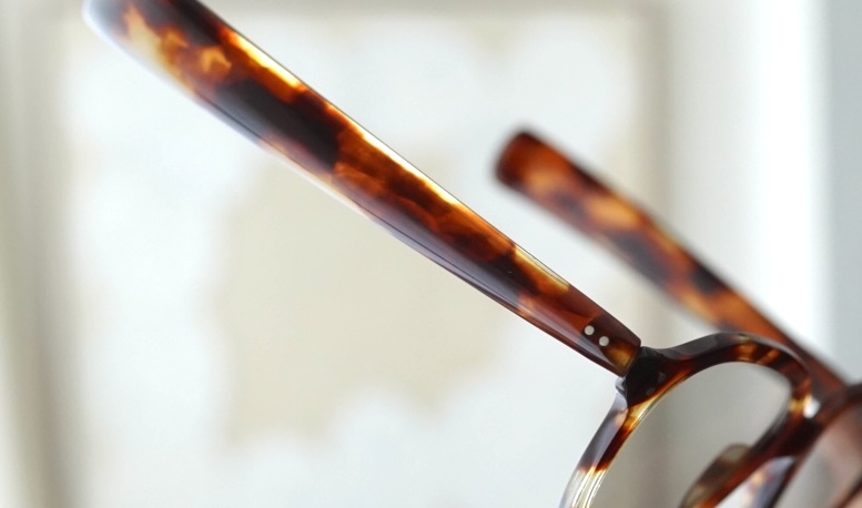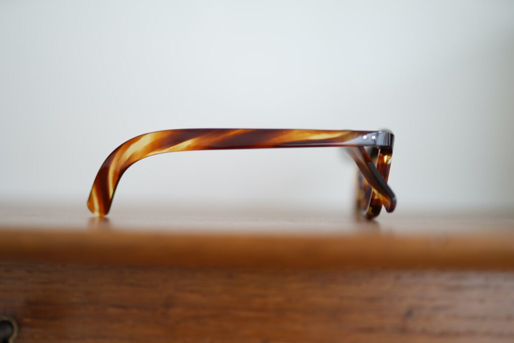 ゼリーのような潤いを含んだぷるっとした生地感は他の樹脂では再現が難しく、まさにこの時代の眼鏡を象徴する要素です。