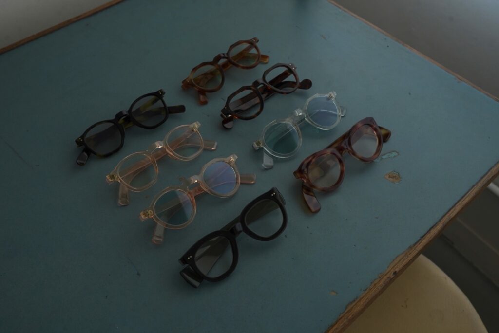 今ではフランスの工場でさえも小規模でつくられている日本製のセルロイド生地を仕入れ、それを加工成型することでセルロイドフレームの眼鏡を作っています。