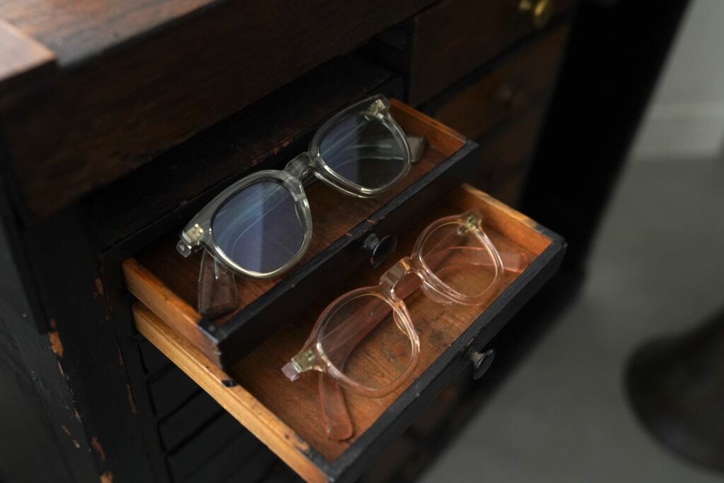 現在はプラスチックフレームのほとんどは安全に生産・加工ができるアセテートが使用されており、セルロイドフレームはまさに時代の遺物となってしまいました。